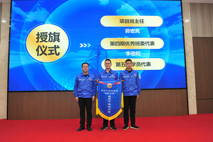會上,茆宏兆副總將代表傳承的班旗交于第四期新聘干部優(yōu)秀班委李勁松,由李勁松將它傳承給第五期學(xué)員代表陳棟。