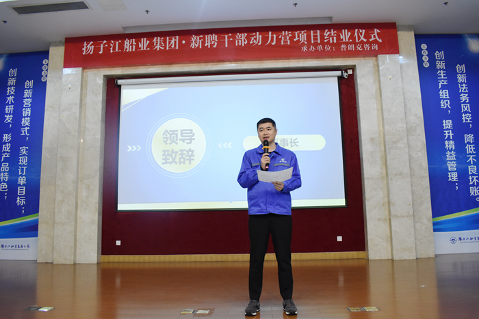 集團董事長任樂天為學員們頒發(fā)了結(jié)業(yè)證書,他恭喜全體49名學員順利畢業(yè),并指出,本期培訓班的學員都是揚子江船業(yè)未來的中流砥柱,通過半年系統(tǒng)的學習,看到了大家能運用所學的知識武裝自己,能夠做到對外獨擋一面,對內(nèi)有效溝通,達到了公司舉辦此次培訓課程的目的。任董對學員們的付出表示肯定,同時對新聘干部們也提出了更高的要求,管理干部們要做到“德才兼?zhèn)洹保紫仁堑碌酿B(yǎng)成,其次才是才的提升,在平時的生活工作中做到公平、公正、公開,在管理中要敢擔大任、敢拔頭籌,用自己的正能量影響自己的團隊。