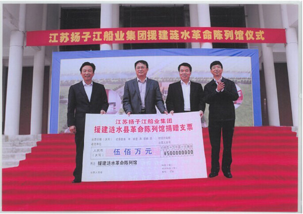 2012年9月13日,江蘇揚(yáng)子江船業(yè)集團(tuán)為江西吉安職業(yè)中等學(xué)校捐資助學(xué)500萬(wàn)元