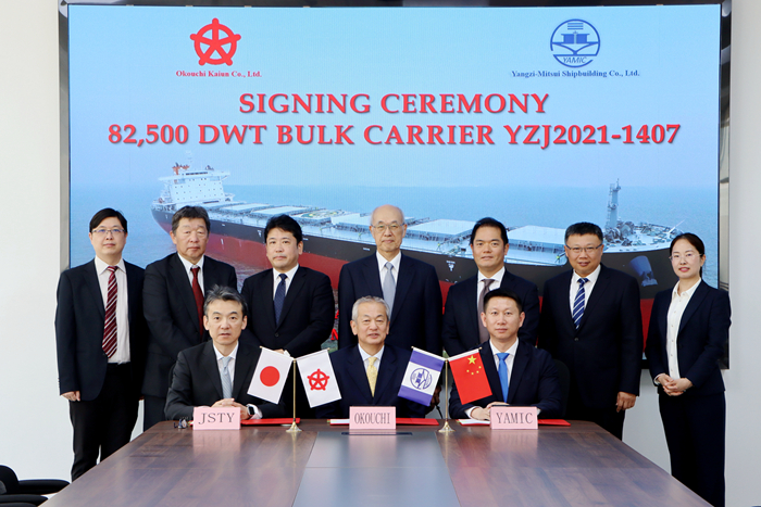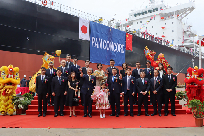 On May 15, representatives of all parties signed the delivery documents. On the morning of May 15, Yangzi-Mitsui Shipbuilding and the ship owner Okouchi jointly held a grand naming ceremony for the new vessel. The godfather, Mr. Jung Sangjin, named the new vessel "PAN CONCORD".
